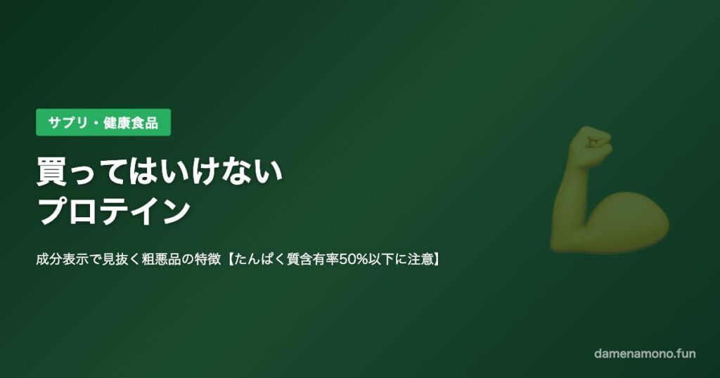 たんぱく質含有率50%以下・砂糖が主原料。成分表示を読めれば粗悪プロテインは一目でわかる。